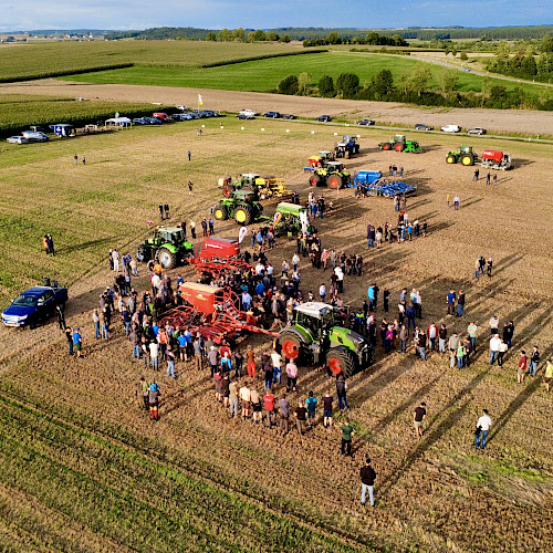 Die Vorführung wurde durch informative Fachvorträge ergänzt und bot in Kombination mit den Maschinenvorführungen, intensiven Gesprächen vor Ort sowie zahlreichen Berichten und Bildern in den sozialen Medien und Zeitungen wertvolle Einblicke in die verschiedenen Systemansätze der Direktsaat.